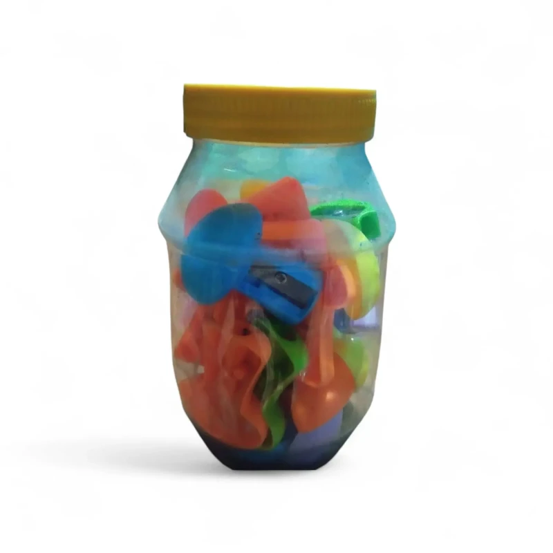 চব্বিশ পিছ ডিজাইন  শার্পনার খুচরা বিক্রি দশ টাকা পিছ এক জার এ চব্বিশ পিছ আছে